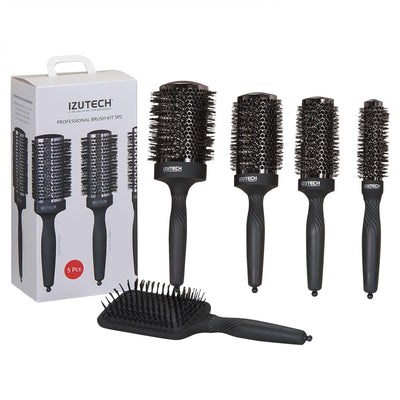 Izutech Professional Brush 5pc Kit(4 Round Brush, 1 Paddle Brush)